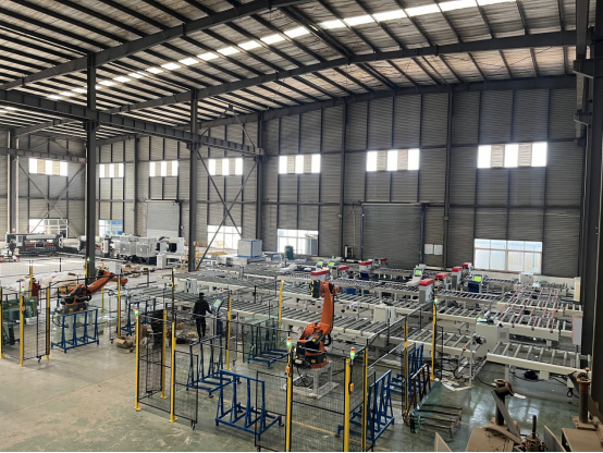 This shower room glass drilling automation processing case, the drilling equipment is connected to the loading table,unloading and washing machines. The high degree of automation of the equipment can achieve efficient and continuous production of glass drilling processes in shower rooms, reflecting the application of automation technology in the field of glass processing, which helps to improve the production efficiency and processing accuracy of glass drilling in shower rooms.We can customize glass processing solutions according to customer requirements